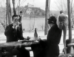 Il film “lanciò come divo cinematografico Vittorio De Sica, fino ad allora attore di teatro leggero, rese celebre la canzone “Parlami d’amore Mariù”, cantata in una sequenza del film dallo stesso De Sica, e rappresentò un’importante innovazione nel cinema italiano dell’epoca, per la scelta rivoluzionaria di girare in esterni invece che negli ambienti ricostruiti nei teatri di posa” (Fonte Wikipedia). I protagonisti, Bruno e Mariuccia, durante la loro gita sul Lago Maggiore, si fermano alla Trattoria della Vedova Musso e bevono un bicchiere di vino all’ombra di una pergola e con la splendida Rocca di Angera sullo sfondo. Alle spalle di Bruno vediamo alcuni ospiti dell’albergo giocare a bocce. Volete rivedere la scena? Cliccate qui e andate al minuto 17.58.
