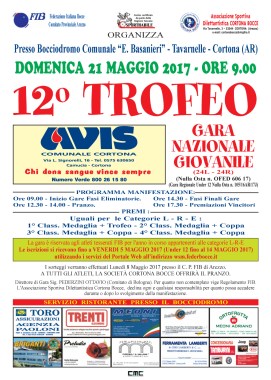Domenica 21 maggio alle 9.00 la ASD Bocciofila Cortona Bocce ospita il 12° Trofeo Avis, gara regionale giovanile (24 L – 24 R).